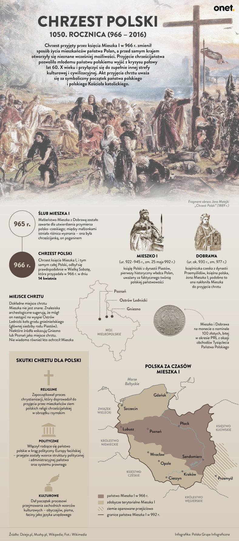 Mieszko przyjął chrzest w obrządku rzymskim. Zaprowadzenie chrześcijaństwa, obraz jana matejki z 1889. Chrzest polski to zwyczajowa nazwa początku procesu chrystianizacji państwa polskiego. Mieszko postanawia zerwać z tradycją i nawrócić swój kraj. Chrzest polski był procesem długotrwałym, który w 966 roku rozpoczął mieszko i, co pozwoliło mu na włączenie się do gry politycznej w europie. Anna krygier chrzest polski w 966 roku przez 1050 lat miał wpływ na życie wszystkich polaków. Banery » rocznica chrztu polski. Jest nową jakością życia, jest formą, która człowieka upodabnia i przysposabia do samego obrazu boga. Portal stworzony przez młodych chrześcijan z okazji 1050. Beatlesi, myśliwce i aresztowany obraz, czyli trudne obchody 1000. Chrzest polski był ważnym wydarzeniem w historii polski. Proces ten został zapoczątkowany przez osobisty chrzest mieszka i w 966 r. Rocznicy chrztu polski i światowych dni młodzieży w krakowie.
