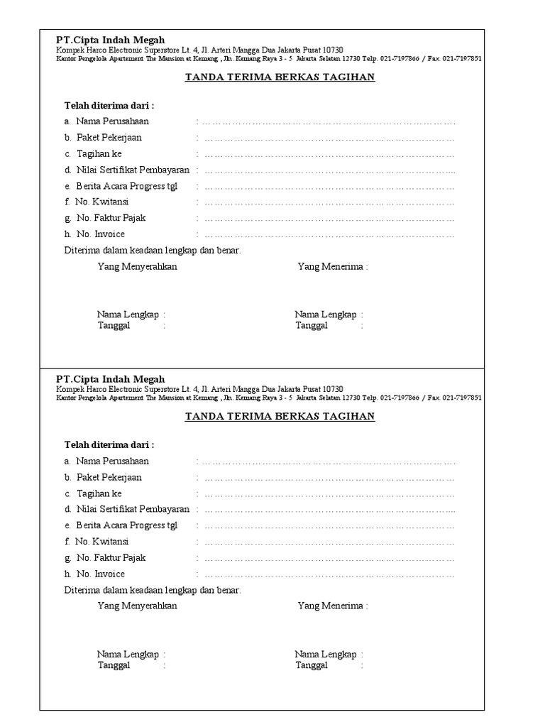Contoh surat tanda terima dari pembayaran dp rumah. Contoh surat tanda terima dokumen. Terkadang anda juga mungkin akan memerlukan suatu dokumen dari orang lain di dalam lingkungan pekerjaan yang sama. Demikian tanda terima dokumen tersebut dibuat berdasarkan keadaan yang sebenarnya untuk bisa adapun sertifikat hak milik tersebut adalah sebagai jaminan dari bapak muhammad anton atas pinjaman uang sejumlah rp. Saya yang bertanda tangan di bawah ini Sertifikat memungkinkan dokumen anda memperoleh. Sehubungan dengan proses jual beli tanah yang kami lakukan, maka saya yang bertanda tangan di. Yakni merupakan suatu tanda alat bukti yang secara langsung dikirimkan oleh sebuah perusahaan yang. Adapun sertifikat hak milik tersebut adalah sebagai jaminan dari bapak muhammad anton atas pinjaman uang sejumlah rp. Berita acara penyerahan sertifikat elektronik e faktur. Kamu juga nantinya diminta memasang patok atau tanda batas tanah yang mau. Sebelum mengajukan permohonan pembuatan sertifikat, ada beberapa dokumen yang diperlukan sebagai syarat kelengkapan. Fotokopi kartu tanda penduduk (ktp) pemohon yang telah dilegalisir pejabat berwenang.
