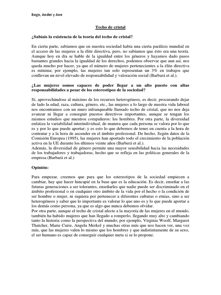Techo De Cristal Ejemplos / La Discriminacion Laboral Mas Alla De La Brecha De Genero Y El Techo De Cristal Con Datos Espana El Pais : Techos móviles y techos de cristal.